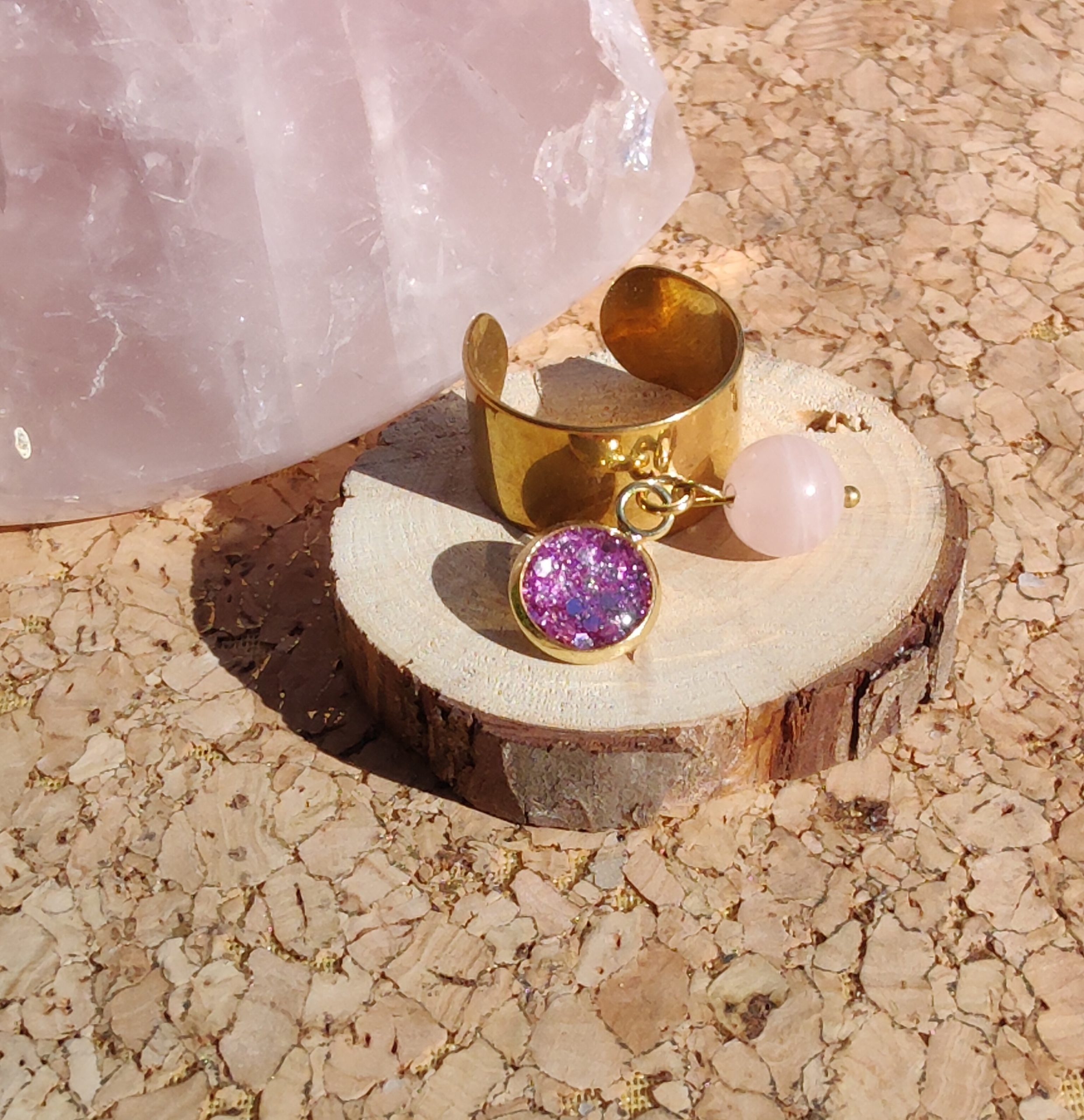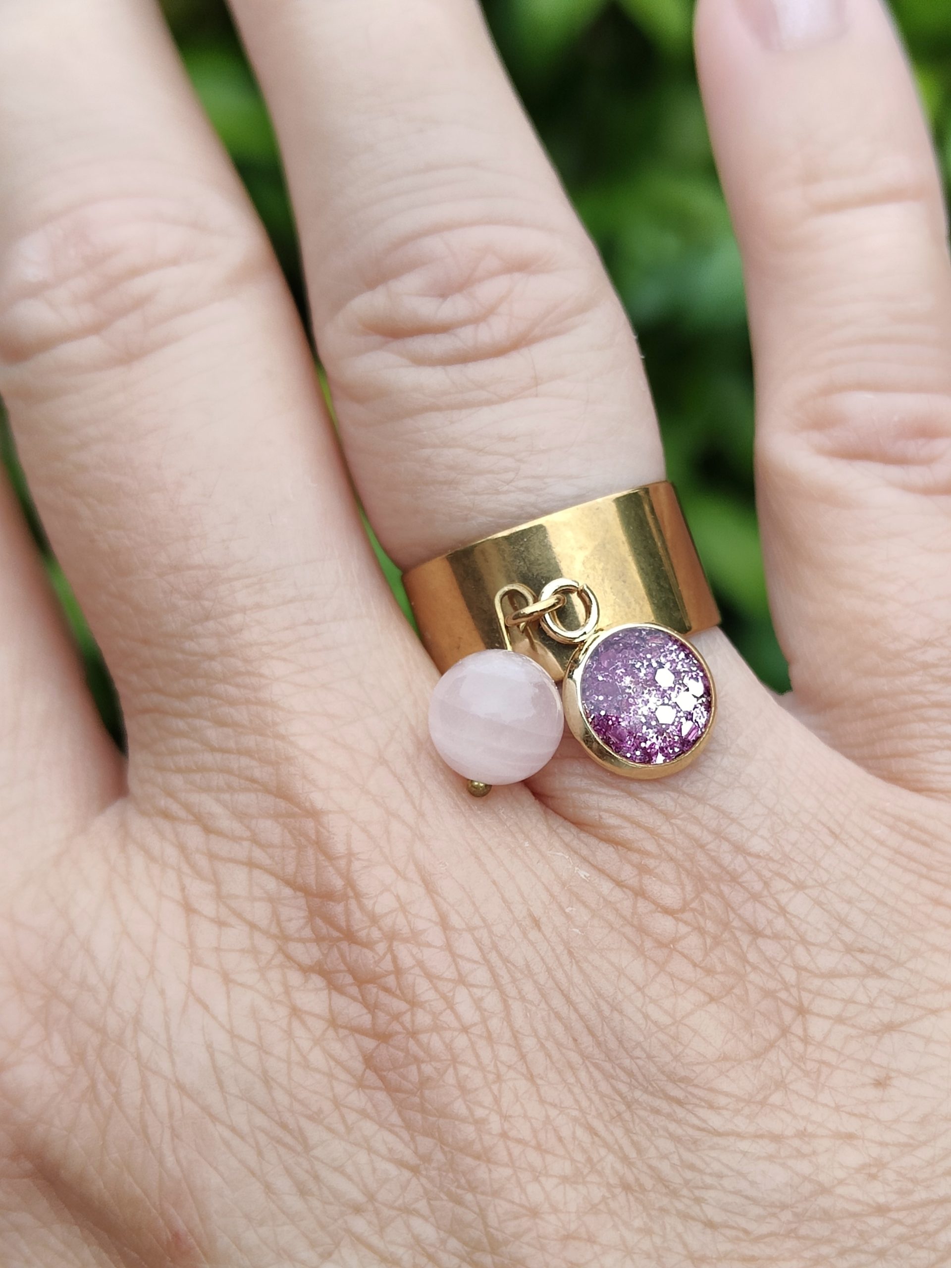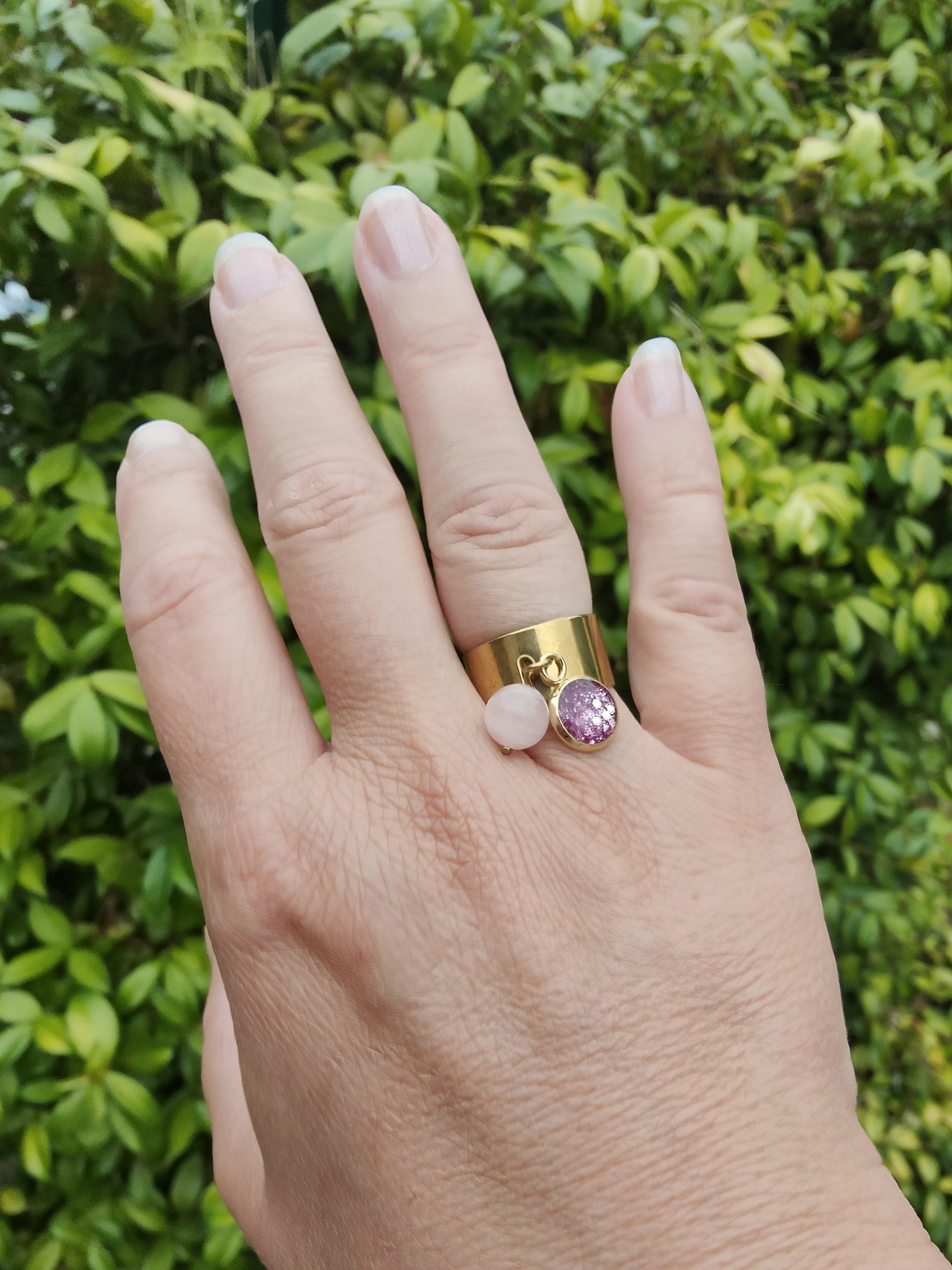 BAGUE DOREE en Quartz Rose