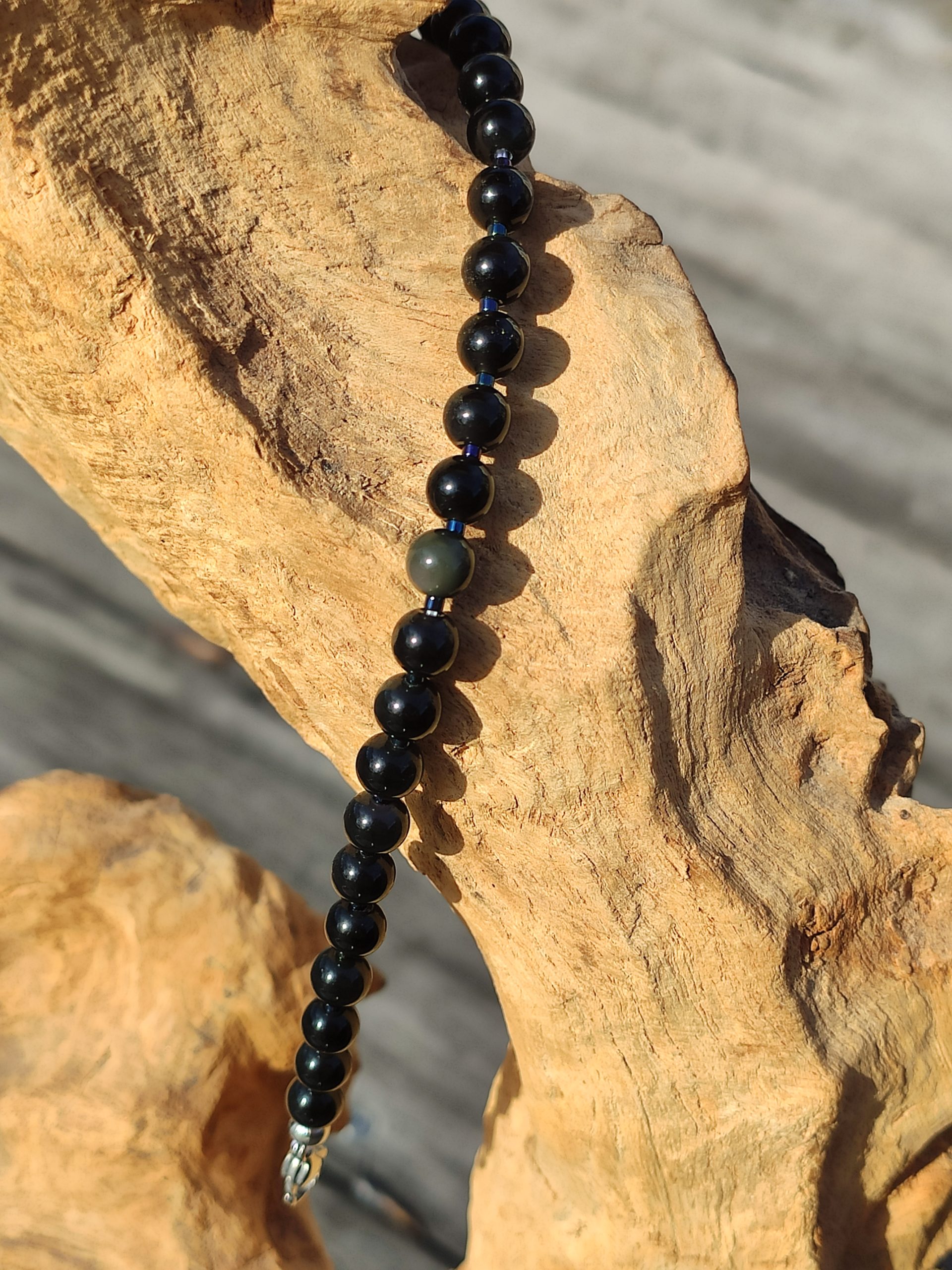 Obsidienne œil céleste (chakra coronal) : Pierre la plus puissante des obsidiennes, elle nous offre la possibilité d’aller au plus profond de nous-même, d’explorer nos parts d’ombres et nos mémoires enfouies, refoulées. Pierre de très haute spiritualité. Elle est le siège de toutes les énergies positives et rayonne puissamment de sa protection. Favorise l’élévation de l’âme. Pierre à respecter et à manier avec grande précaution.