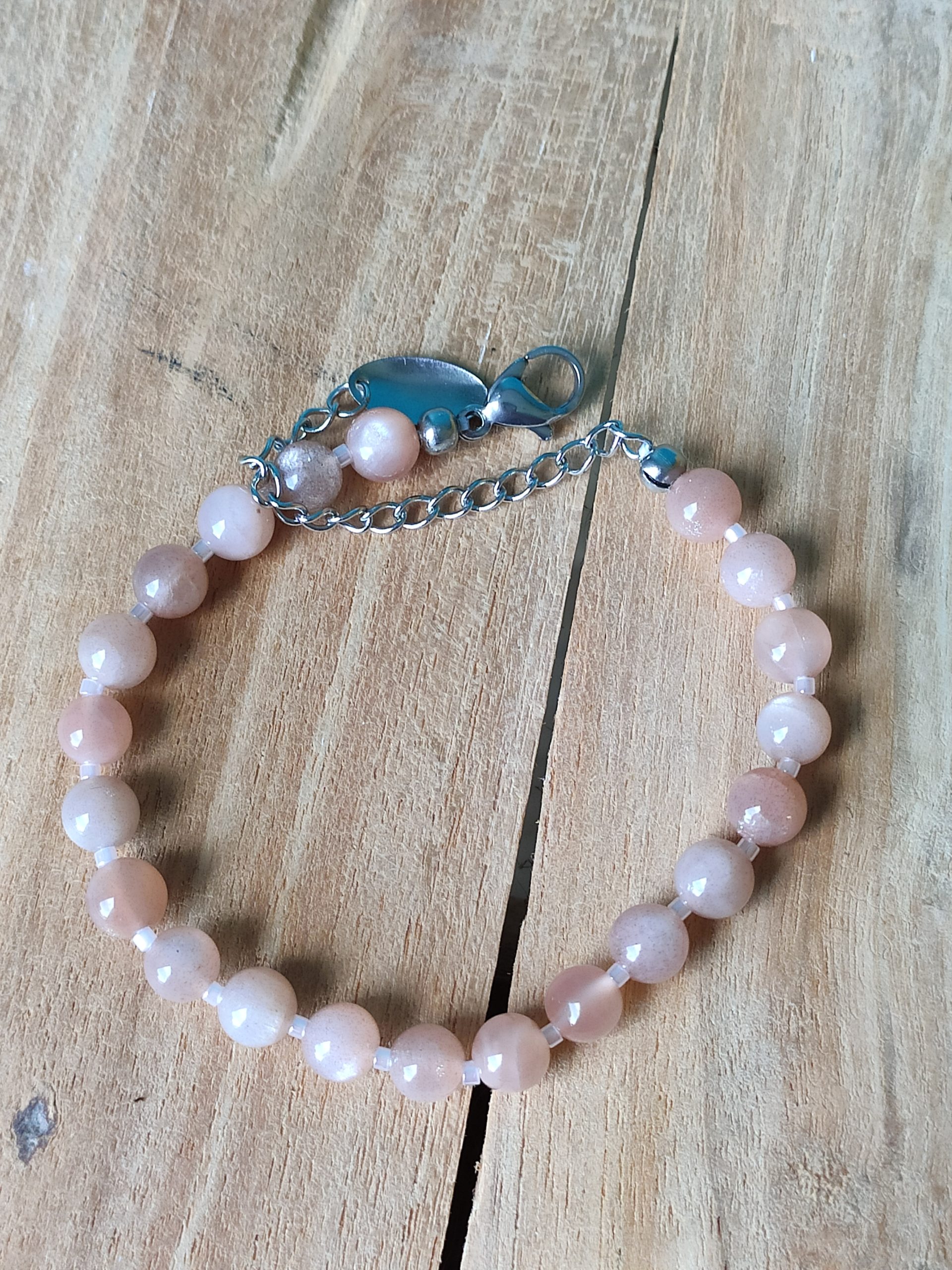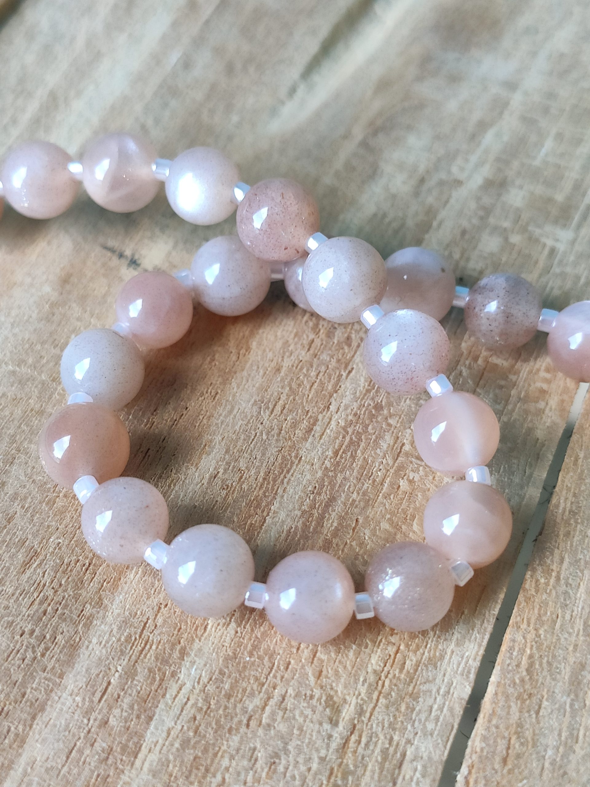 Pierre de lune (chakra 3ème œil et coronal) : Pierre tolérante et compréhensive, elle favorise l’ouverture d’esprit et estompe la peur de l’autre. Pierre excellente pour l’esprit, elle stimule l’imagination, apporte douceur et sensibilité. Elle apaise le stress et amène une paix intérieure. Elle est associée aux problèmes féminins. Elle ouvre la perception aux énergies. Elle accroit les capacités de médiumnité et de clairvoyance. Elle affine la perception et l’intuition. Elle est en lien avec les cycles lunaires ce qui lui confère une dimension céleste.