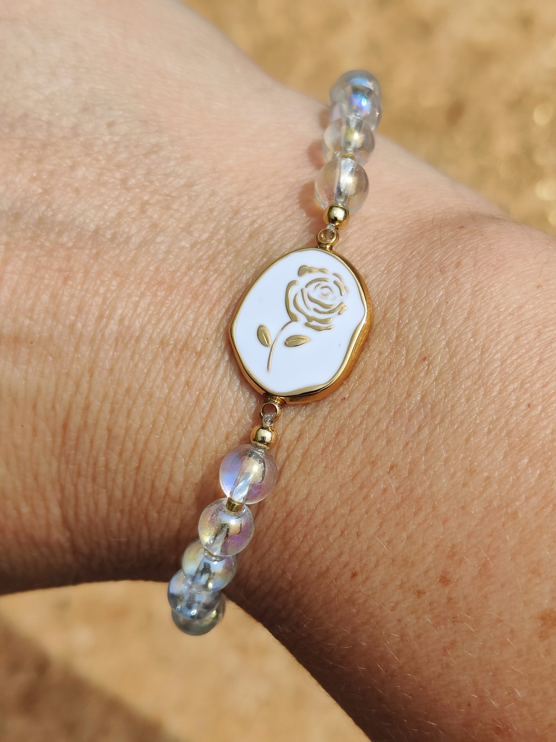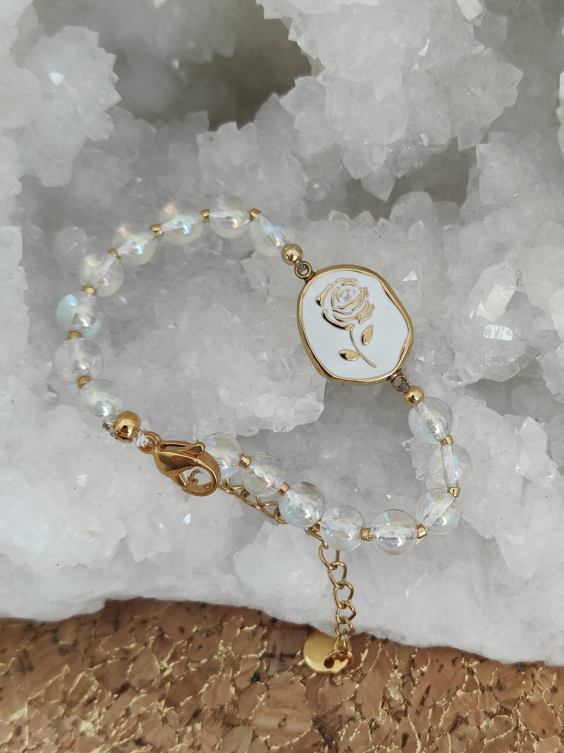 Les bracelets sont composés de pierres fines – sélectionnées pour leurs énergies et leurs reflets – de perles Miyuki pour leur brillance et leur finesse et de perles en acier inoxydable.