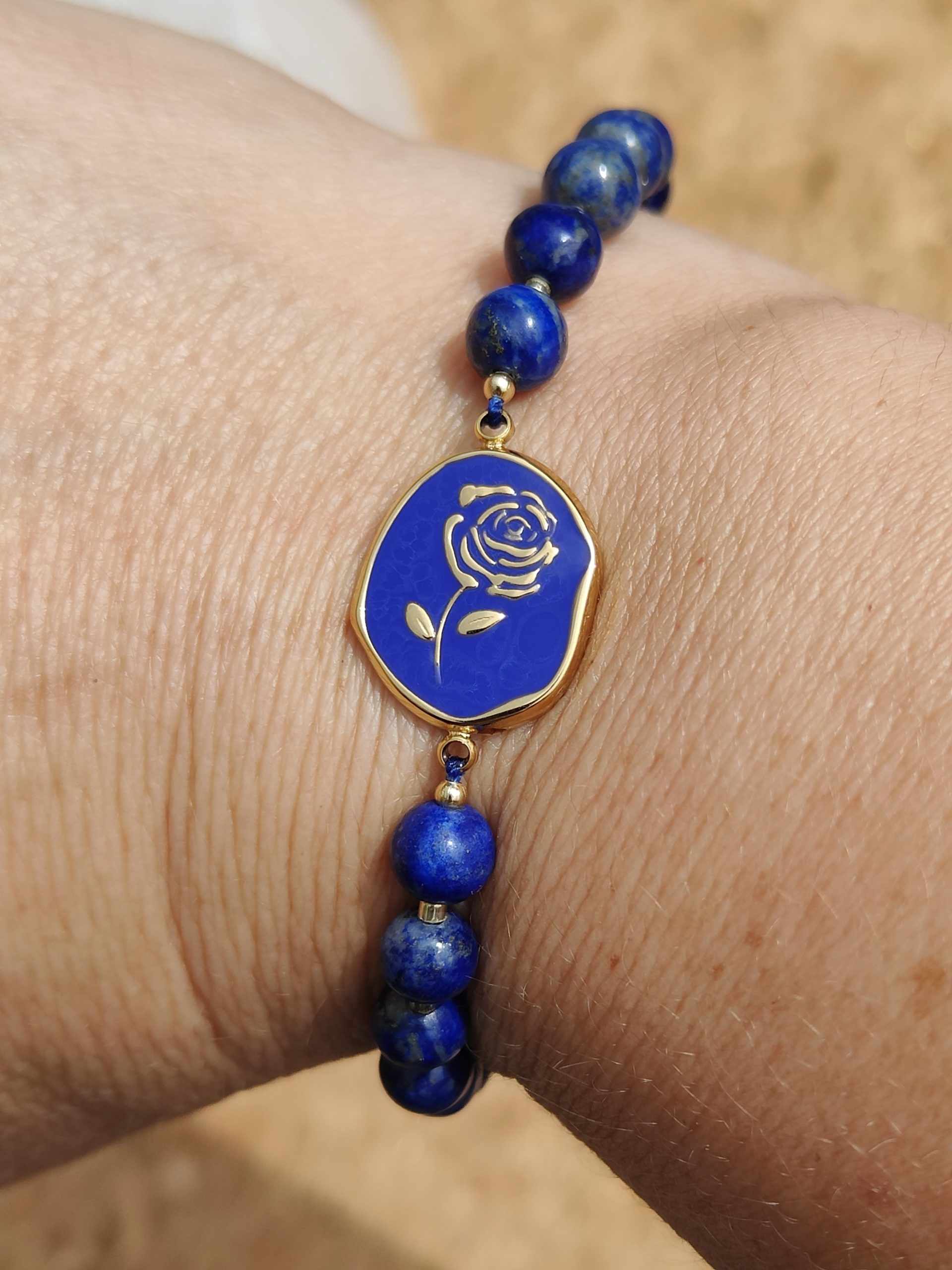 Les bracelets sont composés de pierres fines – sélectionnées pour leurs énergies et leurs reflets – de perles Miyuki pour leur brillance et leur finesse et de perles en acier inoxydable.