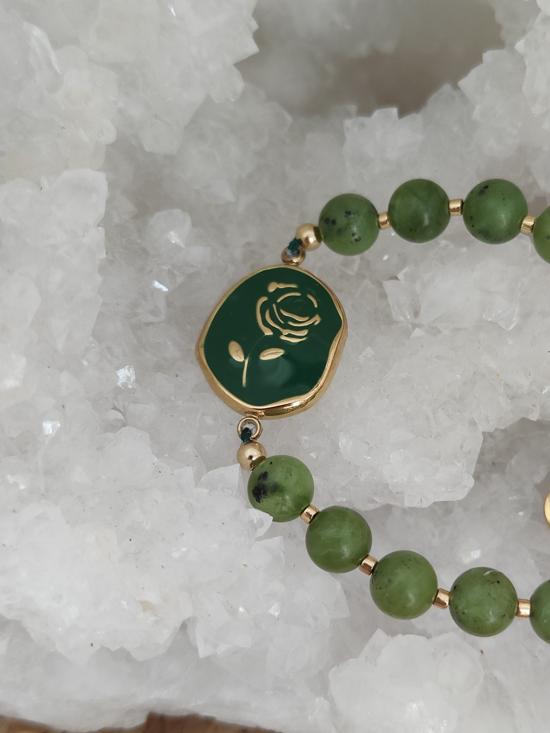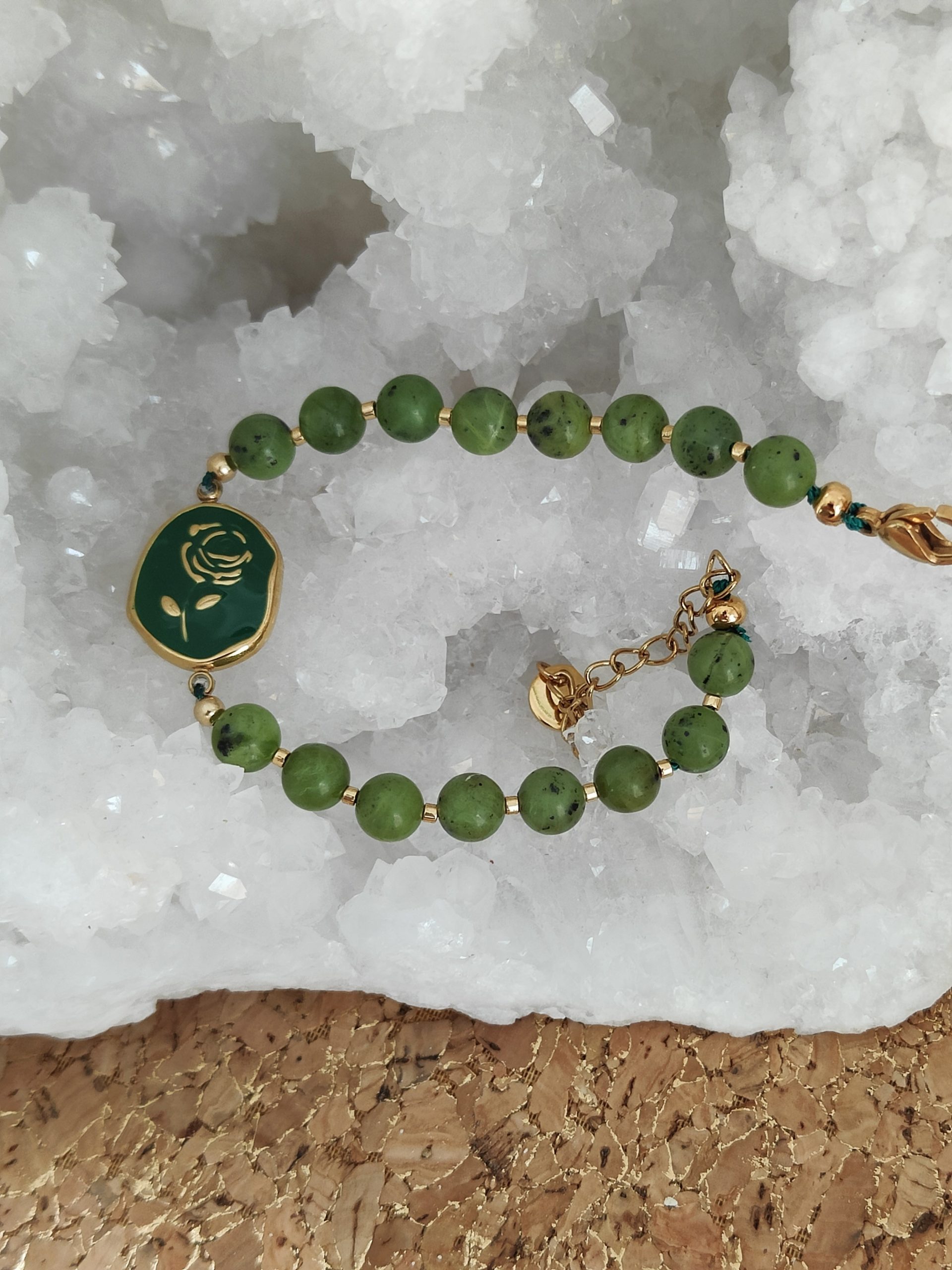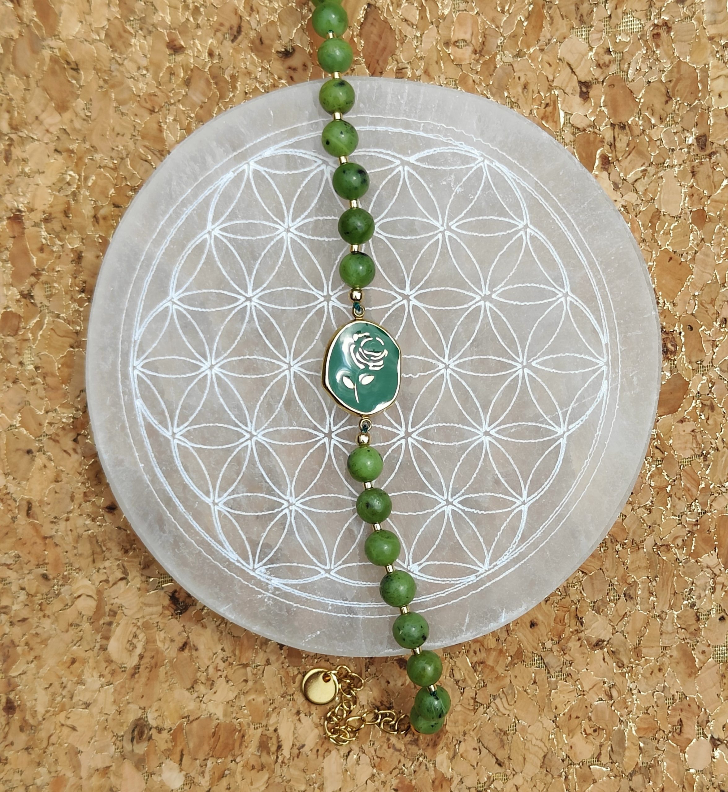 Jade Néphrite (chakra cœur) : Relâche les tensions situées dans le plexus solaire, aide à digérer et à laisser aller les émotions stockées et non digérées et apporte plus de souplesse énergétique dans le corps. Pierre qui incite à l’amour d’autrui, à la modestie, au courage, à la justice et à la sagesse. Aide à soigner les blessures émotionnelles profondes.