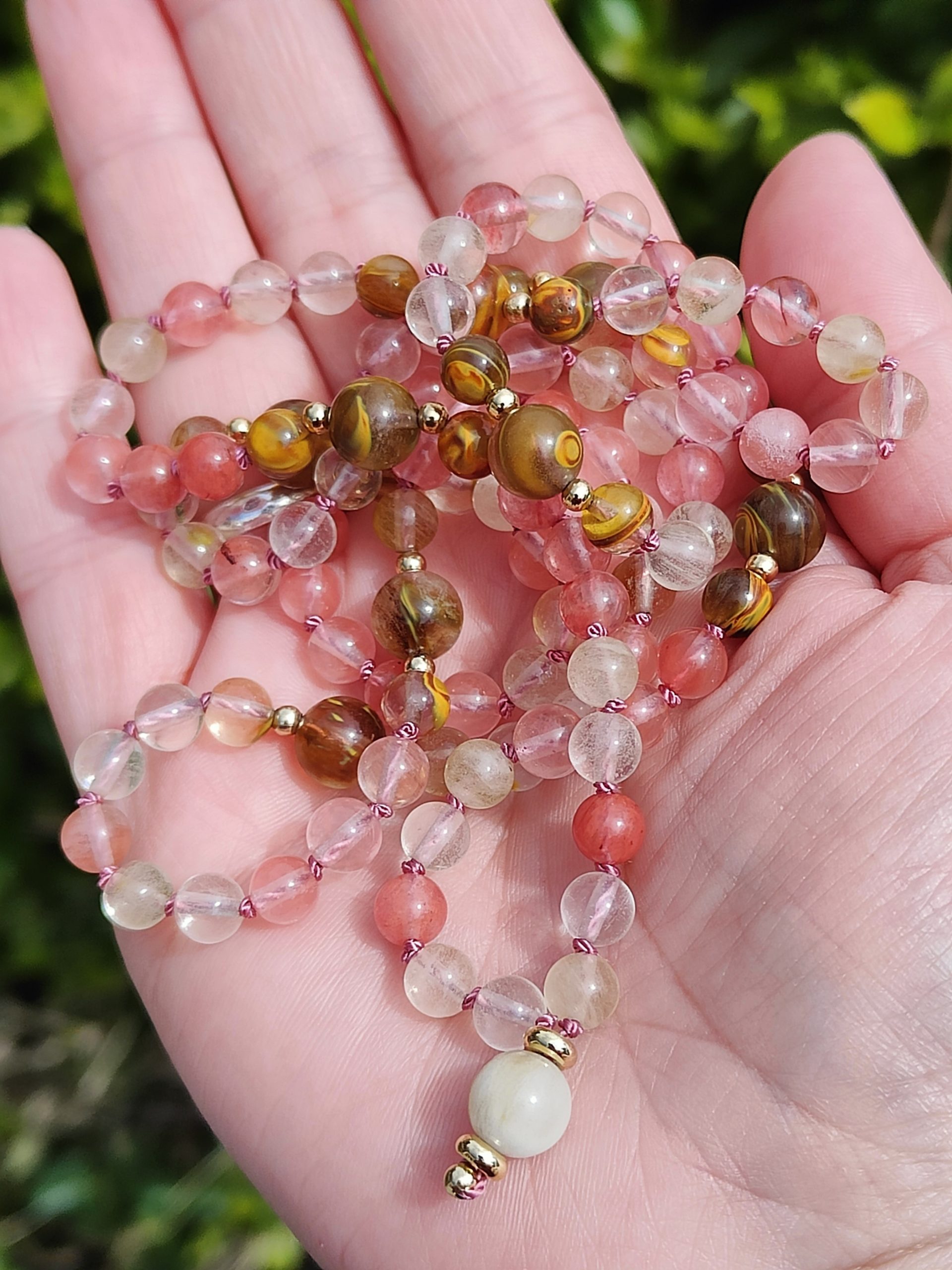 Mala de 108 perles, composé de Tourmaline multicolore.