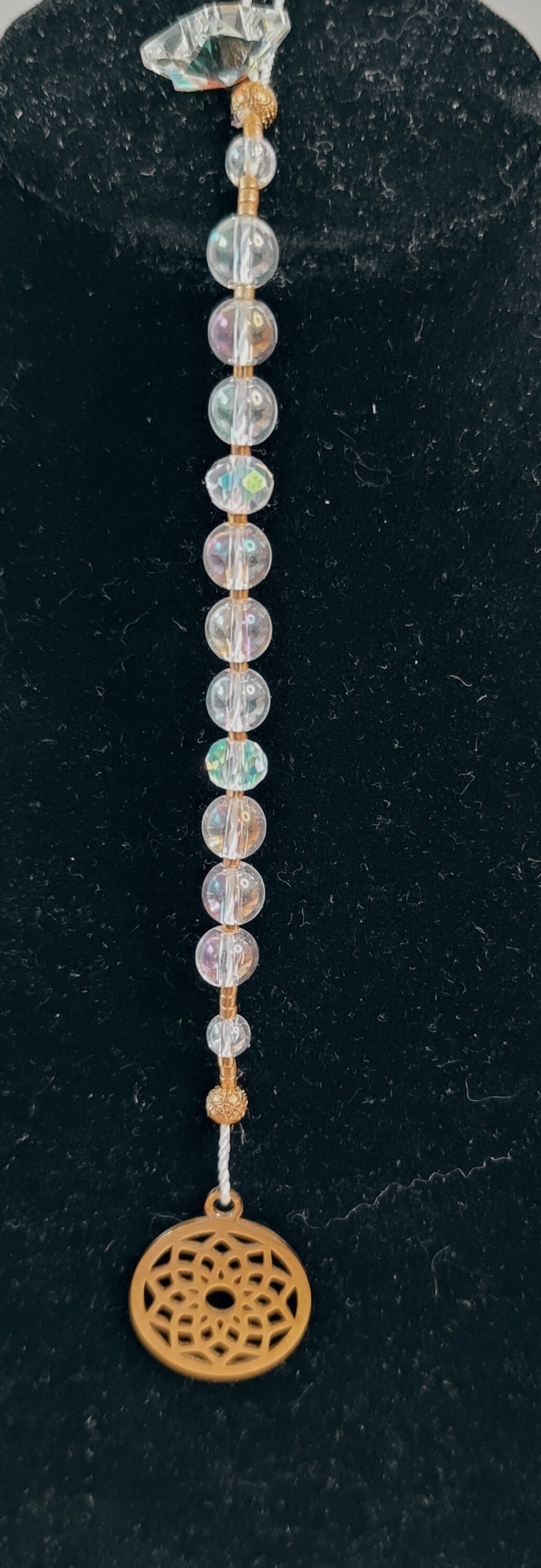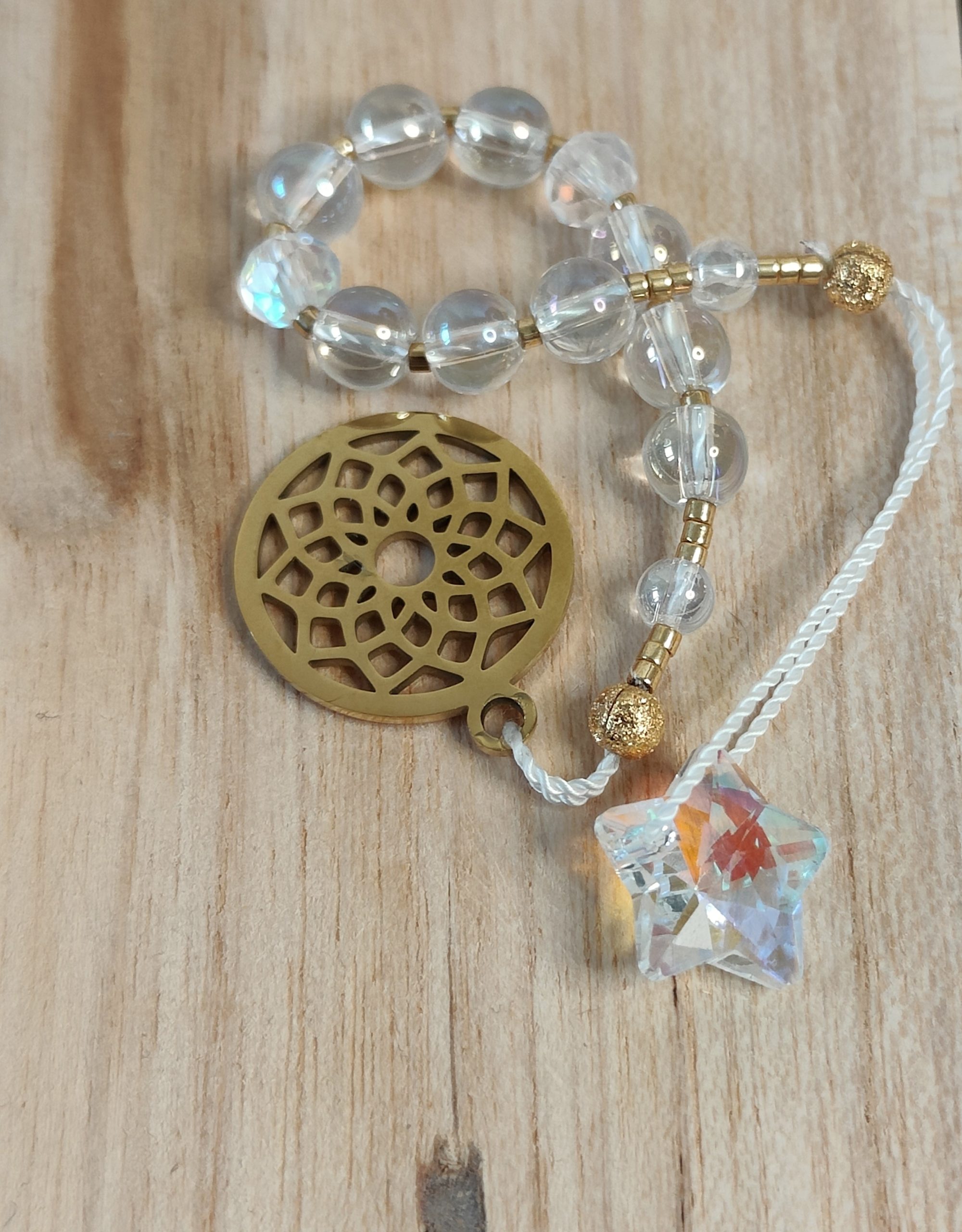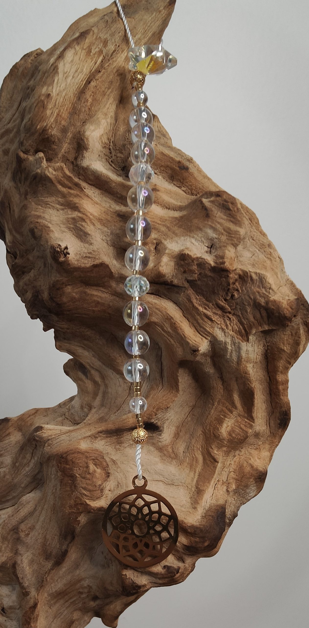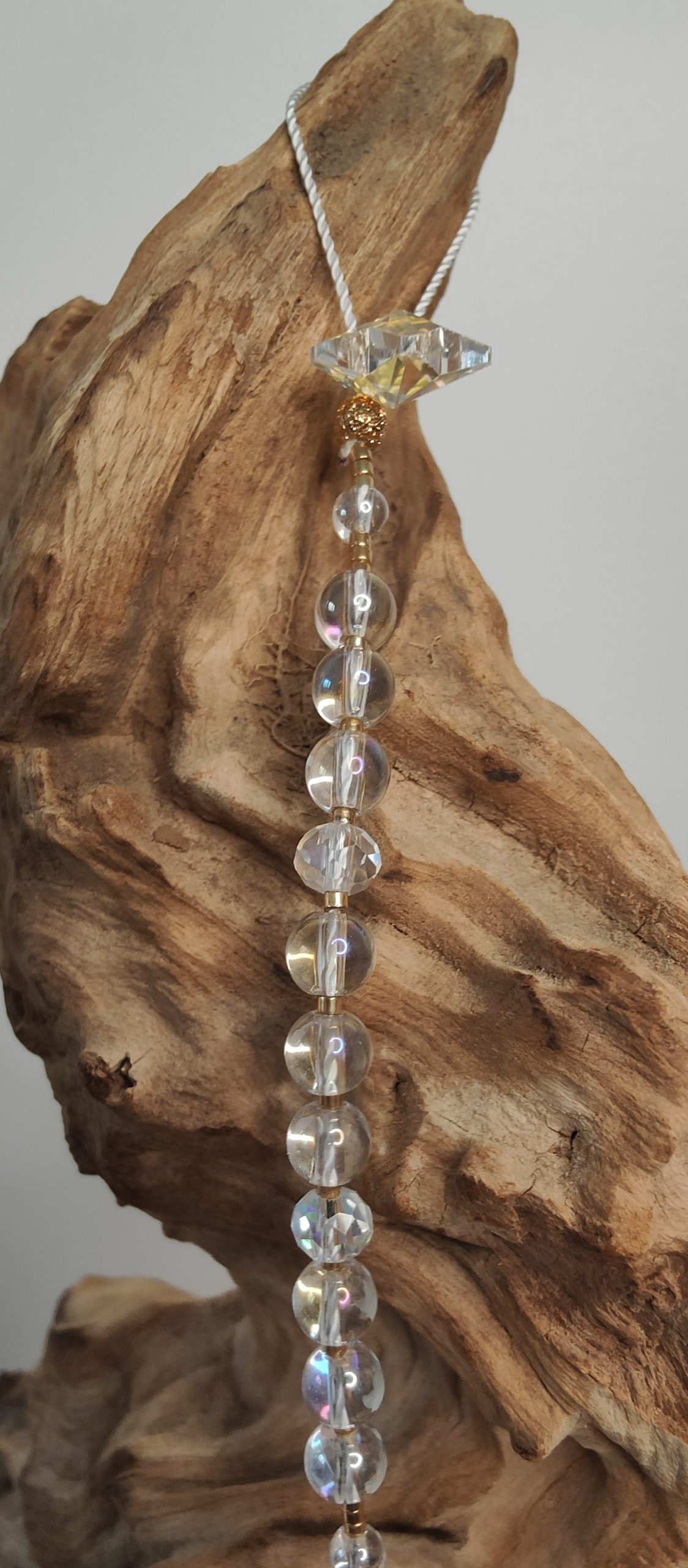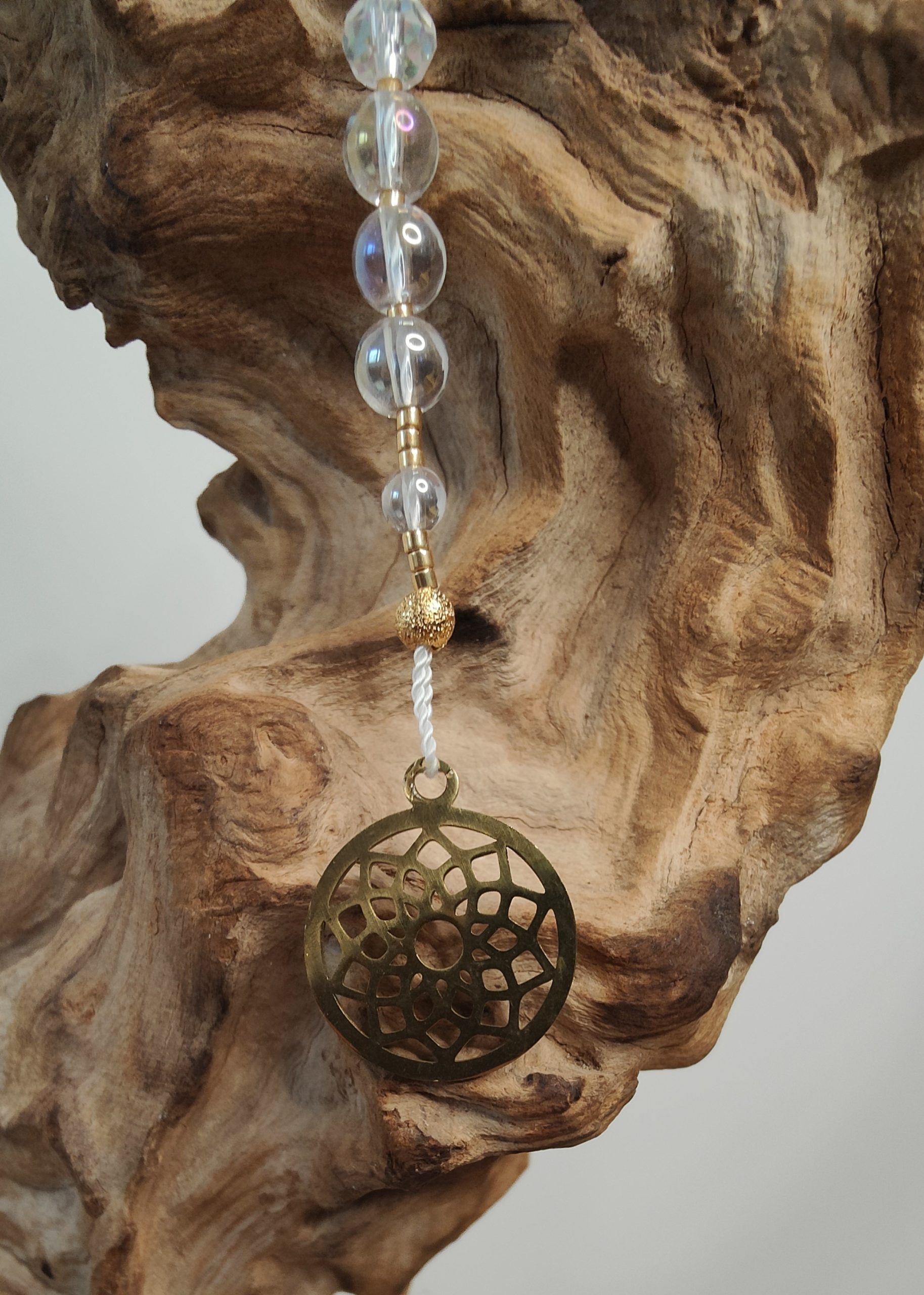 Les suspensions énergétiques, en plus d’être de magnifiques objets de décorations qui transforment les rayons de soleil en une multitude d’arc en ciel dans votre pièce, sont de merveilleux outils thérapeutiques. Vous pouvez les utiliser comme un mala en égrainant les perles une en une lors de vos exercices de médiations, de respiration, lors d’un travail sur soi, d’introspection…